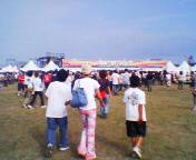 海のほうにバスは進み、15時、会場到着。すでに会場満員。ビール売り場もジュース売り場もグッズ売り場もトイレもすべて長蛇の列。並ぶの嫌なのでじっと待つ。