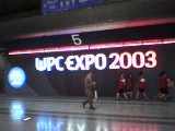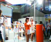 ↑PCエキスポなので来る人はおやじやむさ苦しいかっこをした人おおし。展示会場ではゲームコーナーなども。コンパニオンのお姉さんだけを狙って撮影しまくるカメラ小僧(ホントはいい年をしたおじさんやおやじ)。普通は招待券とかで入るが、この人たちはたぶん入場料(2000円)払ってきている人もいる。それに応えるコンパニオンお姉さん(売れないモデルなのでかなり貧乏)はどういう気持ちなのだろう。