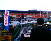 帰りは自民党の松本文明。このおっさんは、選挙ポスターでは安部幹事長、公示前のポスターでは小泉さんと並んで写るなど、他人頼みの知名度アップ作戦。前回負けているだけに必死なのはわかるが。今日は都知事の石原慎太郎さん。慎太郎目当てで駅前は大勢の人人。