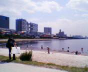 うって変わって超晴天。昼間なのにお台場公園には人がいる。観光客、特に外国人もバラバラと。