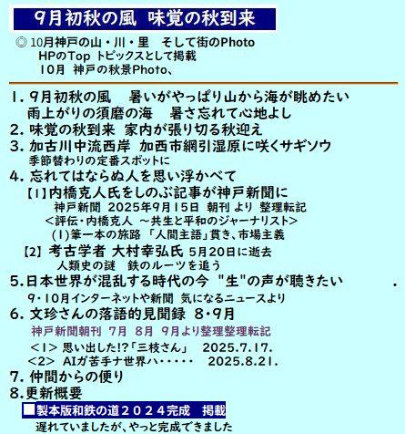 【2025年掲載記事リンクリスト】 【初秋の風 味覚の秋到来 神戸便りtop page】 【Topに戻る】