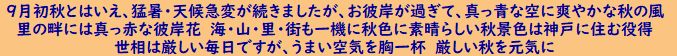 ![]() ![]() 初秋の風 味覚の秋到来 神戸便りtop page