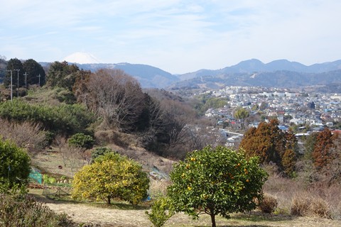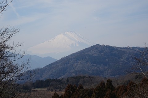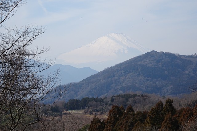 レポート: 今回は丹沢山塊の好展望台でもある渋沢丘陵です。それだけでなくビューポイントでは富士山も見れるようなので期待です。 富士山を見るならまだギリギリ冬の今の時点で登ったほうがいいだろうと、その他の候補の山の中から選択しました。 丹沢も圏央道を使って結構簡単に来れるようになって、首都高を抜けて来ていた以前と比べて楽になりました。渋沢駅付近の1日貸しの駐車場に車を止め、渋沢駅から秦野駅に電車で移動しました。 そして今日は秦野駅から出発です。 今日は暖かいです。4月の陽気らしいです。空気も柔らかく、春の雰囲気が漂います。梅の花も見られて、気分も上がります。 明るい丘陵を登っていきます。 背後には丹沢の山々。 丘陵を登り終え、ほぼ平坦な道を進んでいきます。富士山も木々が途切れた隙間から見ることが出来ました。 震生湖。1923年の関東大震災で土砂が川をせき止めてできたという新しい湖。大震災の凄まじさを感じます。 道標に沿って進みます。このようにわかりやすく道標があって良いです。 この辺りが浅間台。 季節になるとヤマユリが咲くのでしょうか。私有地らしく浅間台のてっぺんあたりには行けませんでした。 早咲きの桜がほぼ満開。春っぽくていいです。 果樹園越しの富士山。随分空が白くなってきて見えにくいですが、左上に富士山です。 そしてこちらは相変わらずの丹沢の展望。 絵入で手作り感の道標がいいです。最後の目的地、八国見山を目指します。 もうちょっと急な登りを登っていくかと思ったら、それも殆どなくあっさりと八国見山到着。こちらの山頂標も良い。 そして富士山。肉眼では結構くっきりと見えるのですが、写真だとわかりにくくなってきています。 ここのベンチで富士山を見ながら遅めの昼食。 あとは渋沢駅まで下ってゴール! 殆どが舗装された道で登山らしさはあまり味わえませんでしたが、春らしさ満開。のんびりと散歩気分で富士山や丹沢を眺めながら歩けて楽しかったです。 帰りは、はだの富士見の湯に寄っていきました。全体が小ぢんまり感がある温泉。ちょっと塩素の匂いが強い感じでしたが、熱めの湯もこの季節は気持ちよかったです。 見かけた草花: