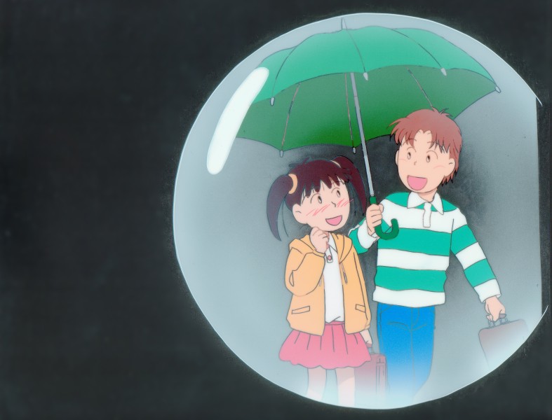 某所で手に入れた『あずきちゃん』の第1期EDセル画。 これらは、上にスクロールしていくシーンですので、しゃぼん玉だけのセルも含め、長さ1mもある長尺のセル4枚に分けて書かれています。 スキャンしたのは、その一部です。 正直、保存に大変困るサイズですが、第1期EDはセル枚数がほとんどないはずですので、結構貴重品ではないかと思います。