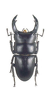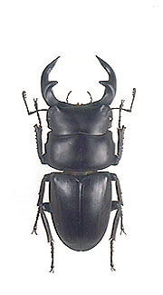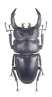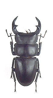 真ん中の個体はDorcus curvidens hopeiラベルは中華人民共和国江西省南康 採集73oとなっている。以前は日本産もこのssp.hopei と同じ亜種とされてたいが 現在は別の亜種とする事が多い。江西省産は日本産と非常に良く似ており、不鮮明な写真では区別する 事は無理。文書で違いを明確に書くのも難しいが、強いて書くと、頭部の少突起は日本産よりもより 鋭角(とがる)に見える。それと大型の個体では、大腮の内歯が日本産よりも前方及び上方を向く傾向 が強い様に見える。 一番右は台湾産Dorcus curvidens formosanus、(Dorcus grandis formosanus)でラベルは台 湾南投県仁愛郷萬大採集。この個体は71o有るが中歯型。このタイワンオオには、前胸背板側縁 が前方にあまり狭くならない個体と、ラオスのグランデスに似て前方に狭くなる形態をしたものが いる。これが産地によるのかその他の原因かはまだよく知らないが、色々な図鑑と標本を見ていく と、同産地で両方の型がいる様に見える。台湾の平地に近い産地は殆ど開発でつぶれた様で、平地 産の標本は古いものが殆どで貴重である。平均的に日本産よりも大きくなり、このクワガタの巨大 な個体は横幅が広がり、その重量感は凄く非常に良い。最大型は80oを越える (今だ見た事あらず) と言われる! |