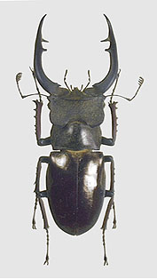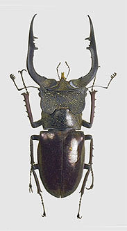 メアレ−ミヤマクワガタ、Lucanus mearesii, 北インド、ネパ−ル、ブータンなどに分布している。この種は以前やはり日本にあまりは入っていなかったのだが、一時期沢山入り現在標本は良く見られる。普通に採集され、産地によっては多産する場所もあると云う。 |