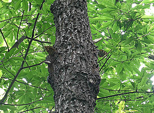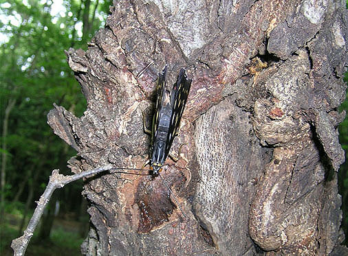 更に近づけていくと、美味しく樹液を吸っていたところを邪魔され怒ってます、この個体は雌ですね。