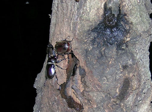 日が暮れて、夜の雑木林の主役はやはりカブトムシです。