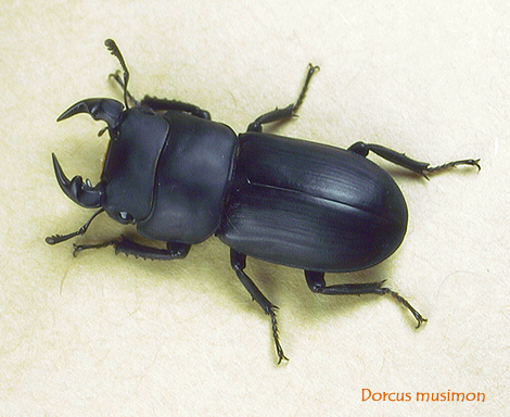 写真はイタリアのサルデーニャ島産。コルシカ島と北アフリカの一部からの記録もあるようです。 ヨーロッパオオクワガタに似ていますが、♀の上翅(エリトラ)には明瞭な溝があり、♂の大顎はこの種の方が幾らか太いようです。