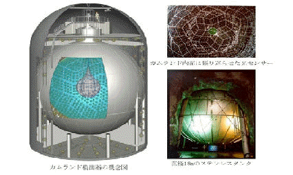 東北大学の反ニュートリノ検出器です。カミオカンデの跡地につくられています。カミオカンデやスー パーカミオカンデとは違った検出方法により、より低いエネルギーのニュートリノを検出することがで きる、と言われています。