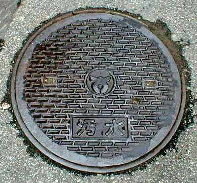 格子模様のマンホール蓋
