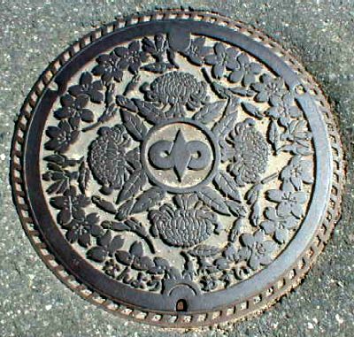 菊と桜をデザインしたマンホール蓋
