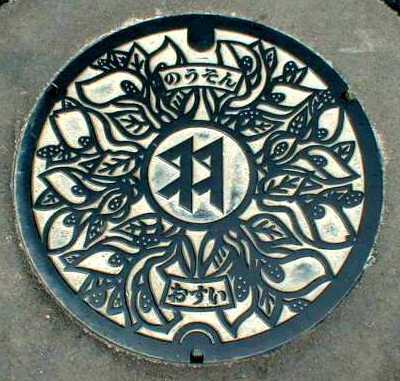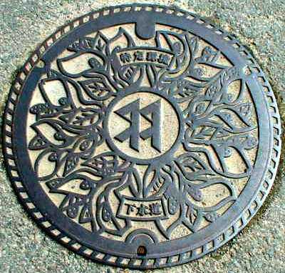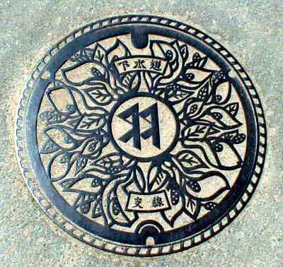 ミズバショウをデザインにたマンホール蓋 (特定環境保全下水道) 平成10年5月23日 羽黒町後田 |