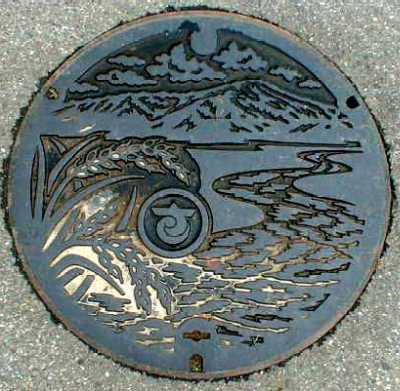鳥海山と稲穂をイメージした マンホール蓋 平成10年5月23日 酒田市関 |