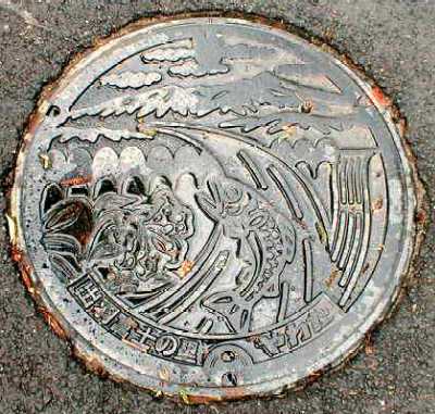 鳥海山、イワナ、山百合をイメージしたマンホール蓋
