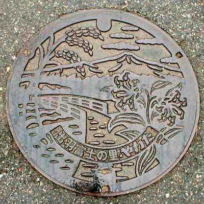 鳥海山、稲、山百合をイメージしたマンホール蓋
