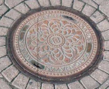 海外では幾何学的な模様のマンホールが大半であるが、ブダペストのショッピング通りにあったタイルと調和したデザインマンホール蓋