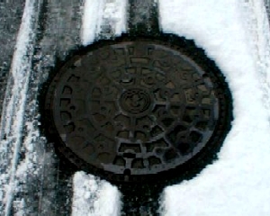 黒いアスファルトの中にあり、目立たないマンホール蓋が冬には違った存在になります。