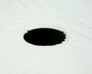 雪が積もった道路は一面白銀の世界となりますが、所々に黒い丸が見られます。