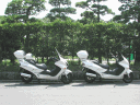 横からもパチリ!。私のは後ろ、前の「FORZA T」はショートスクリーン/メッキハンドル/メッキバックミラー とHONDA純正ドレスアップのようです。 <画像 70KB> |