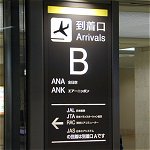 1階は主に到着ロビーとなっています。滑走路に向かって左手の「A到着口」と右手の「B到着口」に分かれています。 A側は主にJAL系列、JAS系列、そしてB側はANA系列が使用しているようです。 お出迎えの方は場所を間違えないようにご注意。両方の到着便が表示されているので、到着口をきちんと確認しないと間違えそうです。 |