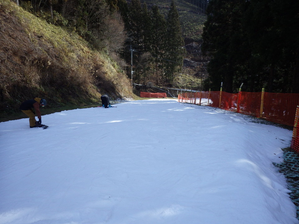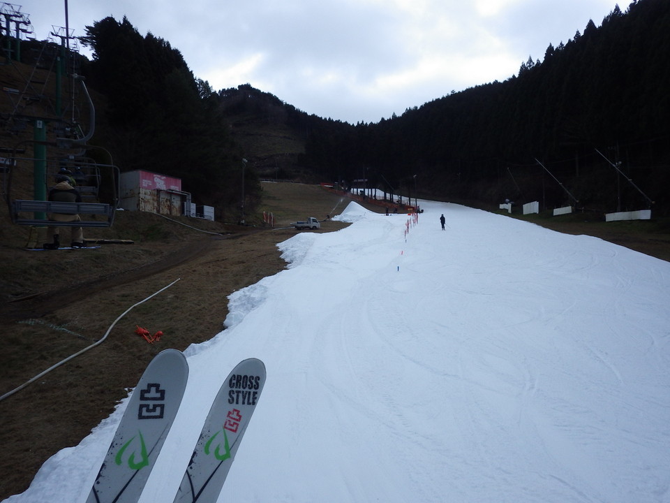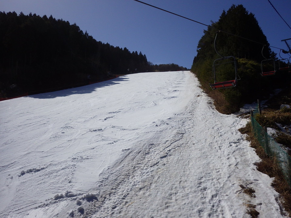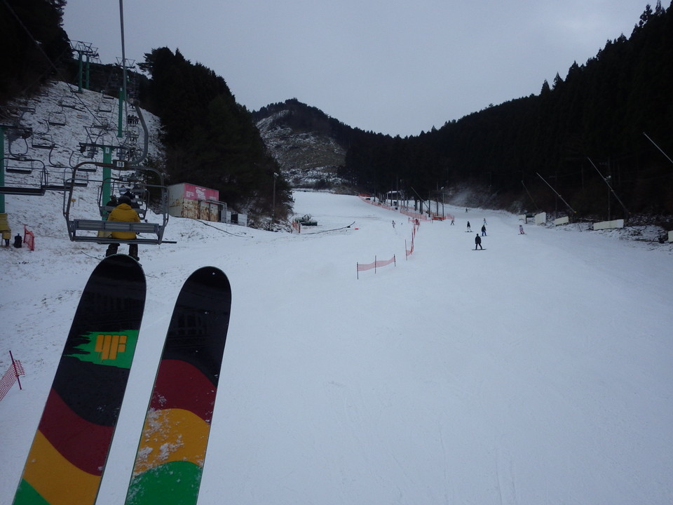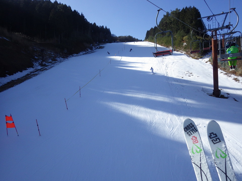 <小田(13)>冷えてカチカチのコブは想像以上でした。 10人くらいで苦労して氷を削りながらデラかけ。 しかも、昨日のデラかけの後に、誰かが1本滑ったらしく、 2本のレールの跡が残って、そのまんま固まっている。 これはひどい〜。( ̄_ ̄|||) さらに、昨日、デラかけし過ぎで下の方のコブが消えかかっている。 すると、大勢が迷いながら滑ってしまうので、 違う場所に大きなコブが育ってしまう。 それは良くないので、またUさんを筆頭に コブのラインをつけなおしました。 僕はそのあとに現場に到着したので、 事情を知らずに普通にデラかけしたら、 「ちが〜う!そうじゃない。ラインを消さないで!」 と怒られてしまいました・・・・ その後、 みんなが板を回して滑った結果、とてもいいコブに育ちました。 この時期に特有なことかもしれませんが、 9:00からコブ作成、またはメンテナンスを初めて、 10:00〜11:00頃の2〜3本が僕にとってはベストです。 その後は、深く掘れたり、荒れたり、刻々とコブの形が変わっていくので 難易度が上がります。 今日のベストタイムのコブは、 板のトップを落としながらバンクターンすると気持ちいいよ、と コブが教えてくれるような形をしていました。 コブの形に合わせて滑るなら、 トップを落としながらバンクをスライドして回していくライン、 コブを見た瞬間に分かっちゃったんです。 コブの上の方に雪庇ができかかっていて、 雪庇の手前半分くらいをスライド気味に崩して滑る感じになります。 そんな滑り方は初めてだったのですが、 とても気持ちよく滑れました。 いつもこんな形のコブならモーグルの上達は早いのじゃないかな。 しかも、 ショートピッチのコブという検定向けのワナがしかけてある(笑) 面白くいいコブ。 午後になってもだいたい全部通して滑れました。 本当に今日が最終日なんですか?! 帰りに、小田町の廣瀬神社に寄って、 無事にスキーシーズンが終えられたことのお礼参りをしました。 愛媛側からソルファ・オダに行く人は、 ほぼみんなこの神社の前を通るはずです。 主祭神は 天御中主神(あめのみなかぬしのかみ) 高皇産霊神(たかみむすびのかみ) 神皇産霊神(かみむすびのかみ) 古事記の最初に現れる三柱の神様です。 ありがとうございました。 来シーズンもよろしくお願いします。 久万でコブを滑っている爺ちゃんたちも、 挨拶できなかったけど、 来シーズンまで死ぬなよ〜。 ![]() リフトが動き始める30分前から準備万端整えてベンチで雑談。いつものパターンでは10分前からリフトゲートに並びます。霜が降りているということは、結構冷えたのです。