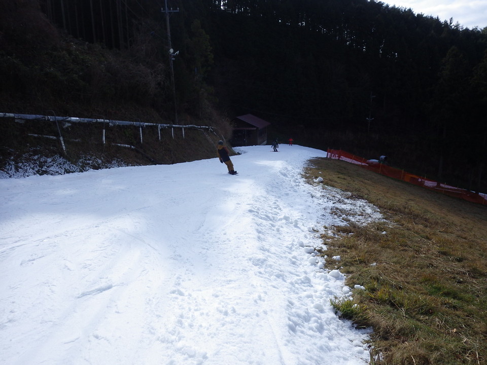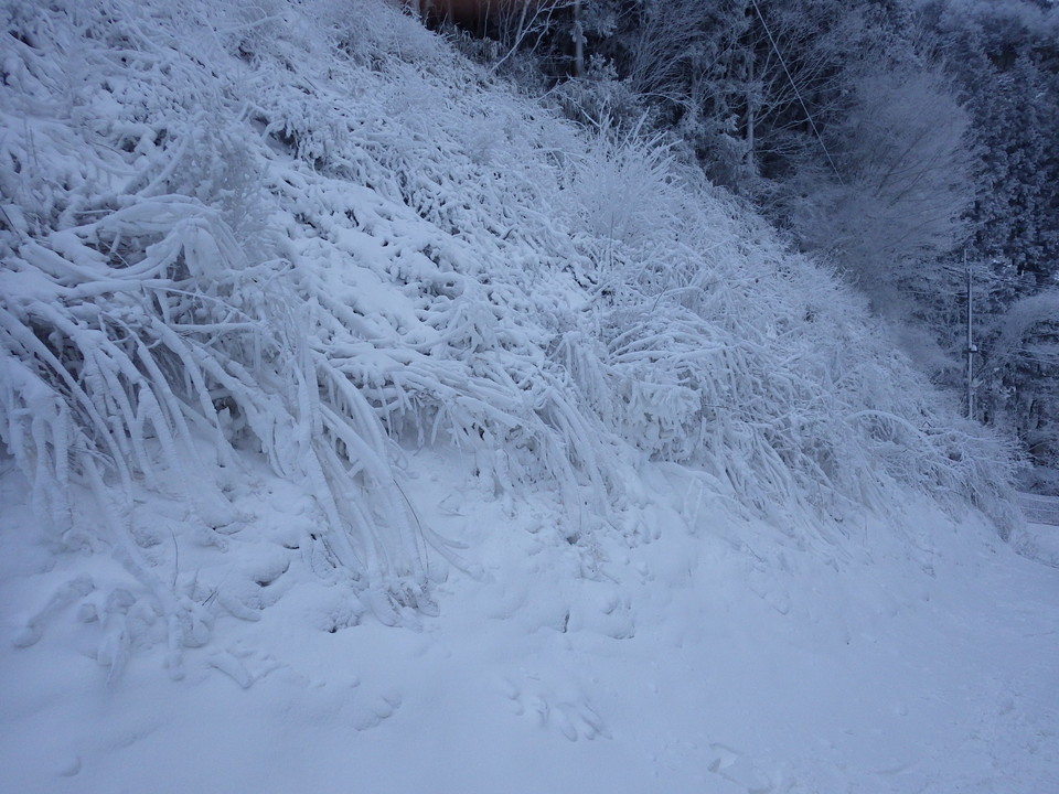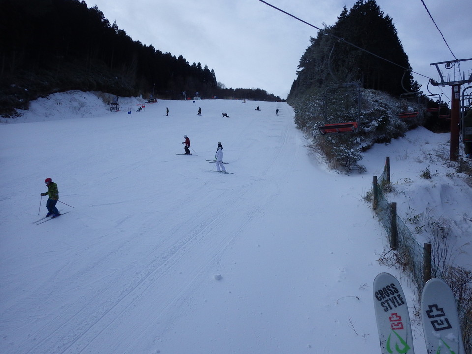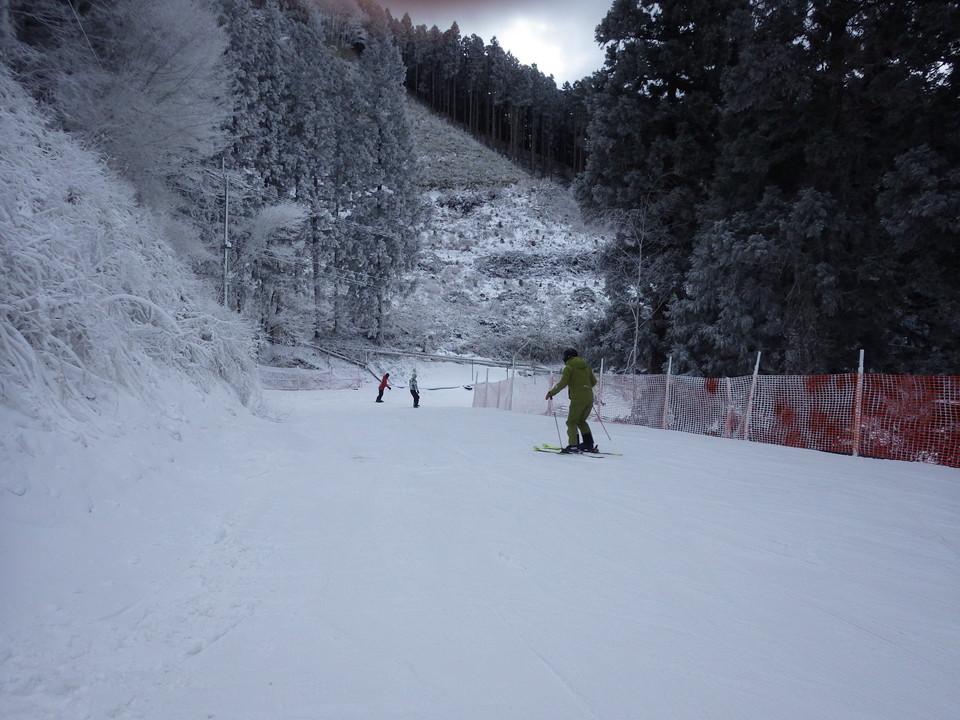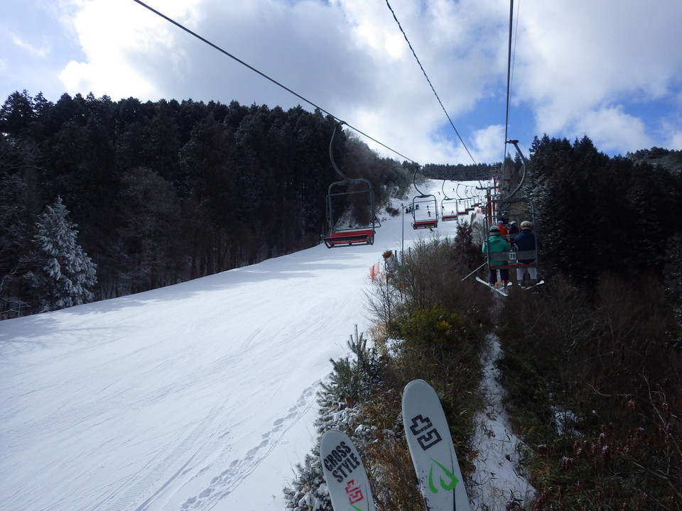<小田(13)>冷えてカチカチのコブは想像以上でした。 10人くらいで苦労して氷を削りながらデラかけ。 しかも、昨日のデラかけの後に、誰かが1本滑ったらしく、 2本のレールの跡が残って、そのまんま固まっている。 これはひどい〜。( ̄_ ̄|||) さらに、昨日、デラかけし過ぎで下の方のコブが消えかかっている。 すると、大勢が迷いながら滑ってしまうので、 違う場所に大きなコブが育ってしまう。 それは良くないので、またUさんを筆頭に コブのラインをつけなおしました。 僕はそのあとに現場に到着したので、 事情を知らずに普通にデラかけしたら、 「ちが〜う!そうじゃない。ラインを消さないで!」 と怒られてしまいました・・・・ その後、 みんなが板を回して滑った結果、とてもいいコブに育ちました。 この時期に特有なことかもしれませんが、 9:00からコブ作成、またはメンテナンスを初めて、 10:00〜11:00頃の2〜3本が僕にとってはベストです。 その後は、深く掘れたり、荒れたり、刻々とコブの形が変わっていくので 難易度が上がります。 今日のベストタイムのコブは、 板のトップを落としながらバンクターンすると気持ちいいよ、と コブが教えてくれるような形をしていました。 コブの形に合わせて滑るなら、 トップを落としながらバンクをスライドして回していくライン、 コブを見た瞬間に分かっちゃったんです。 コブの上の方に雪庇ができかかっていて、 雪庇の手前半分くらいをスライド気味に崩して滑る感じになります。 そんな滑り方は初めてだったのですが、 とても気持ちよく滑れました。 いつもこんな形のコブならモーグルの上達は早いのじゃないかな。 しかも、 ショートピッチのコブという検定向けのワナがしかけてある(笑) 面白くいいコブ。 午後になってもだいたい全部通して滑れました。 本当に今日が最終日なんですか?! 帰りに、小田町の廣瀬神社に寄って、 無事にスキーシーズンが終えられたことのお礼参りをしました。 愛媛側からソルファ・オダに行く人は、 ほぼみんなこの神社の前を通るはずです。 主祭神は 天御中主神(あめのみなかぬしのかみ) 高皇産霊神(たかみむすびのかみ) 神皇産霊神(かみむすびのかみ) 古事記の最初に現れる三柱の神様です。 ありがとうございました。 来シーズンもよろしくお願いします。 久万でコブを滑っている爺ちゃんたちも、 挨拶できなかったけど、 来シーズンまで死ぬなよ〜。 ![]() リフトが動き始める30分前から準備万端整えてベンチで雑談。いつものパターンでは10分前からリフトゲートに並びます。霜が降りているということは、結構冷えたのです。