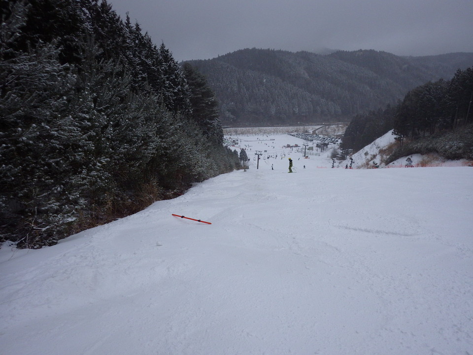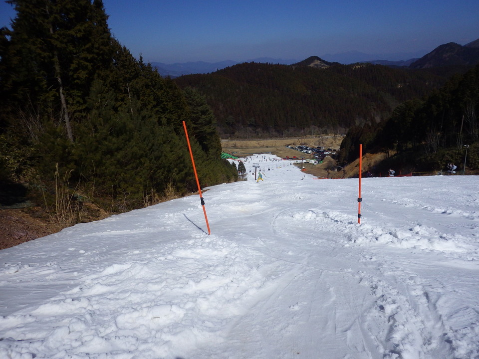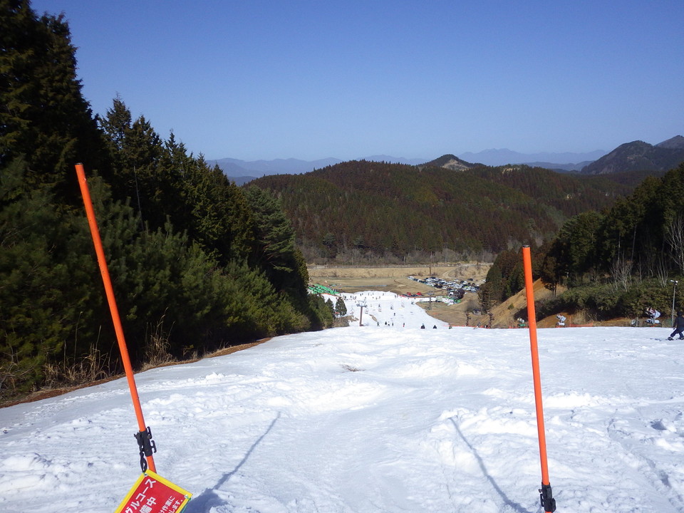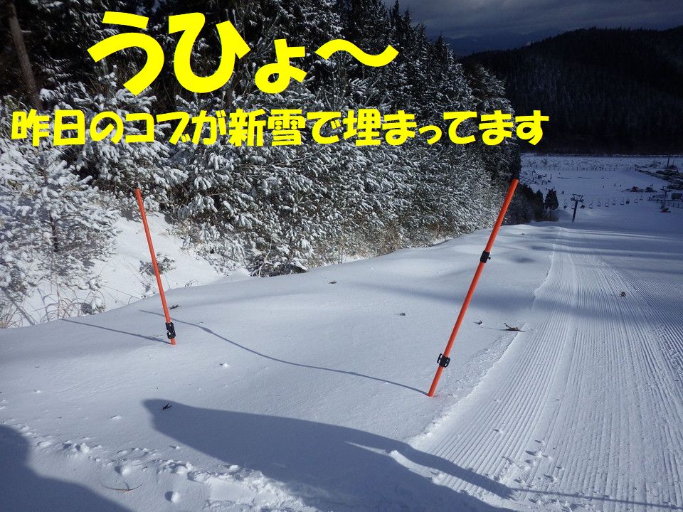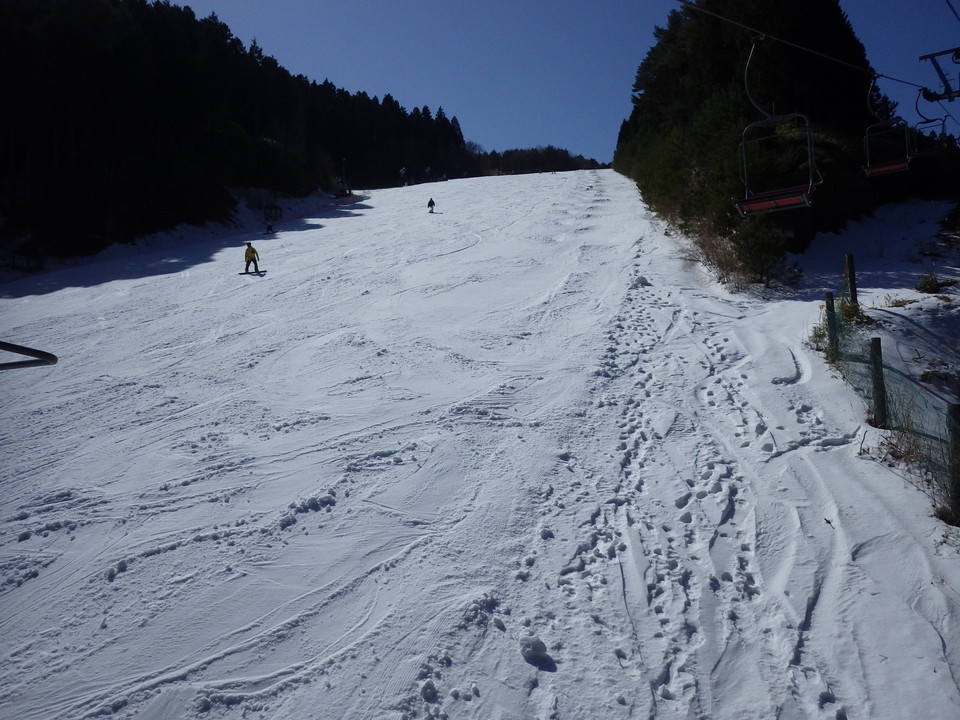![]() 一方、同じコブなのに、 午後は修行のようなコブに深く掘れてしまいました。 バンクターンならなんとか通せるようなコブ。 土が出たところを埋めながら滑り、 最後の1本と思ってスタート地点に行ったら、 ボーダーさんがコブを滑ってました。 しかも超キレイにデラかけしてある。 そのボーダーさんがやったとしたら、ただ者じゃない仕上がりなんですが。 かなり広い幅で扇形にスライドしていて、 「バンクターンして!して!」な形のコブというか、 「バンクターンした〜い!」な仕上がりでした。 最後なので、気持ちよくいただきました。 φ( ̄▽ ̄)Ψ