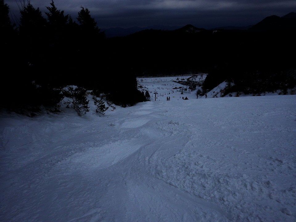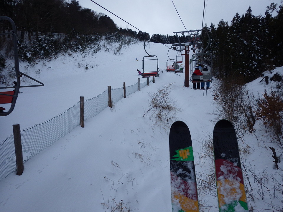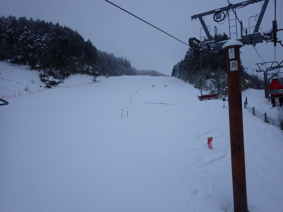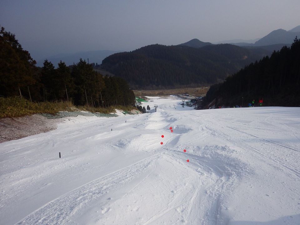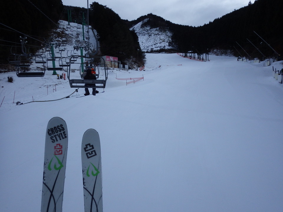 <小田(2)>小田は冷え冷えの降雪で、雪質はパウダーです。気温はマイナス6度。 本日は、大会用のモーグルコース作成日。 モーグルチーム「フリーバンプスTEN」は休会中で会費を払ってないし、 大会にエントリーもしてないので、 コース作成には参加しないで遊んでてもいいよ〜 というご意見もありましたが、 義理、とかボランティアとか、そんなものではなくて ある目的があって参加しました。 コブを掘る目印として、整地に等間隔でポールを立てて、 あとは滑ってコブを掘るのですが、 この、滑って掘る作業に最初から参加したかったのです。 今の自分がどの程度滑れるのか? 整地からだんだんと掘り下げていって、どこまで滑れるのか? 確認してみたかったのです。 結果は、エア台なしコースは滑る人が少なかったため、 あまり深く掘れなかったので、 一本目から帰る直前まで完走できました。 大会にエントリーしている方、運営側の方、 たくさんの方に再会できてよかったです。 「ちゃんと滑れてるじゃん!」と声をかけていただきましたが、 かなりごまかしているし、すぐボロが出ます。 右のストックを前方の遠くに突く事が出来ず、 足元にしか突けないので、ちょっと油断すると 板が引っかかってしまいます。 じゃあ、ストックを突かなきゃいいじゃん?ですよねー。 でも、それはそれで危険があります。 立て立てに滑りたい凸凹でも、外側の大廻りで おとなしく滑る方を選びます。 今日も一日ありがとうございました。 ![]() ![]() これから滑って掘ります![]() 幻のテクノコース |