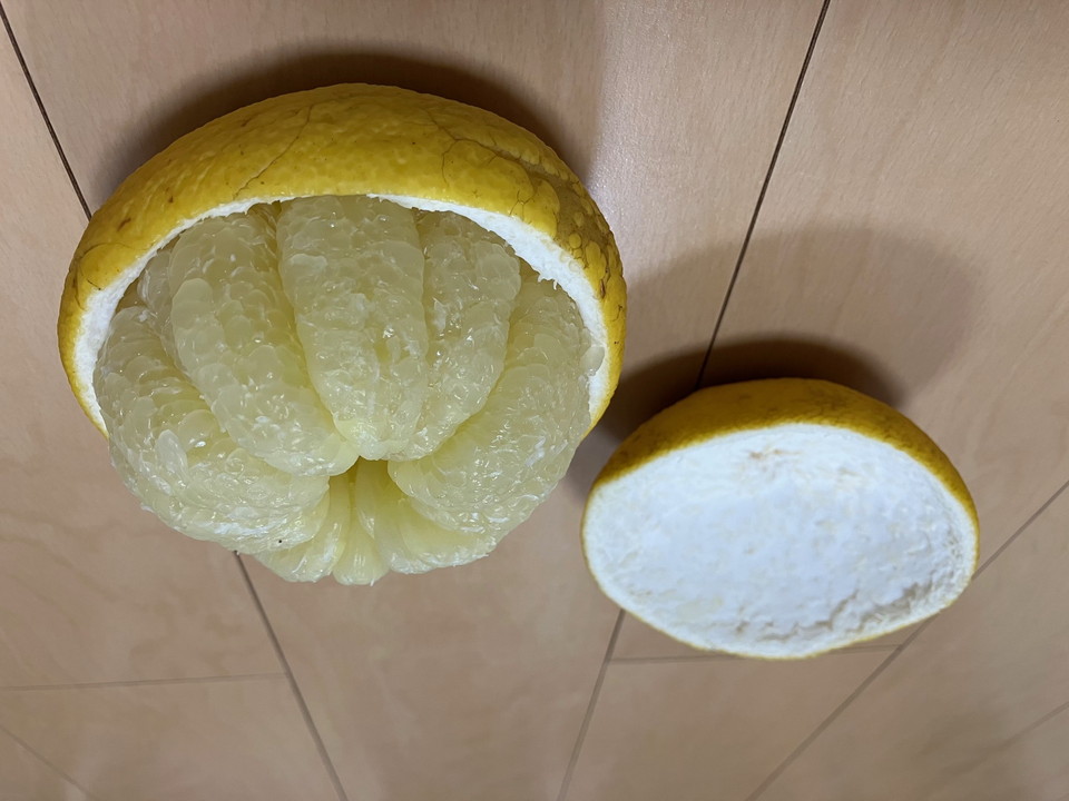 ![]() 今シーズン2つ目の土佐文旦を剥いてみました。 収穫した日から、新聞紙に包んで約50日寝かせて熟成したものです。 いい味になってましたわー。 熟成させると美味しくなるのですね。 3つ目は収穫日が分からないのに50日寝かせた結果、 皮の水分が飛んでカチカチ・・・・・ 剥くのが大変でしたが、味は良かったですよ。 |