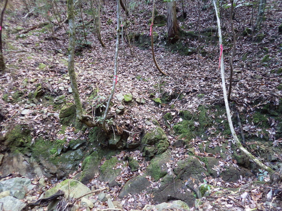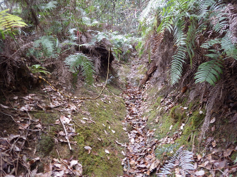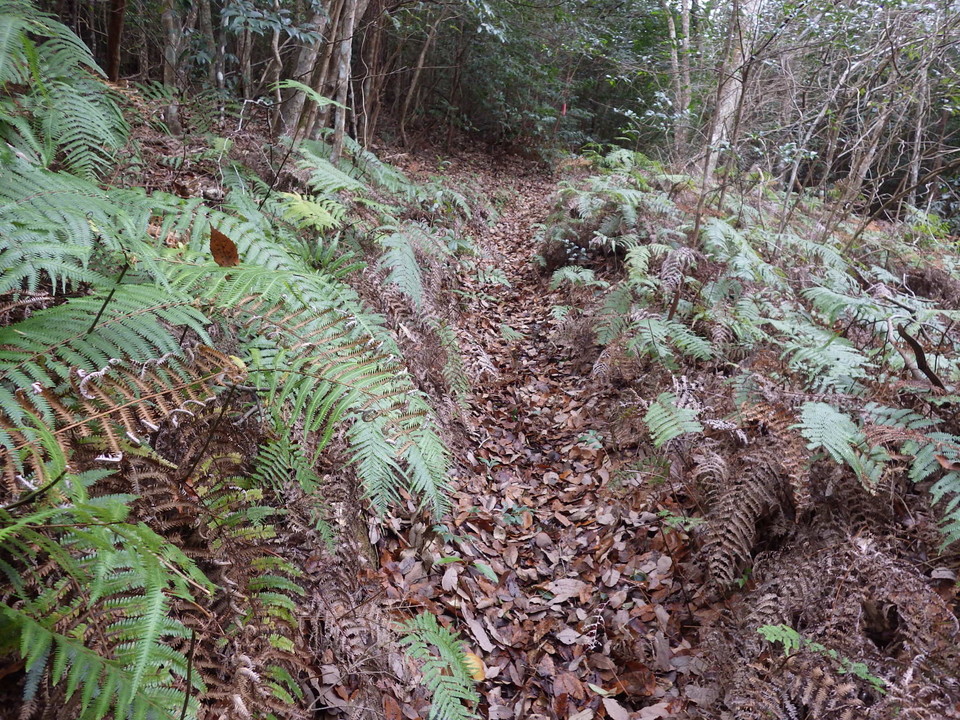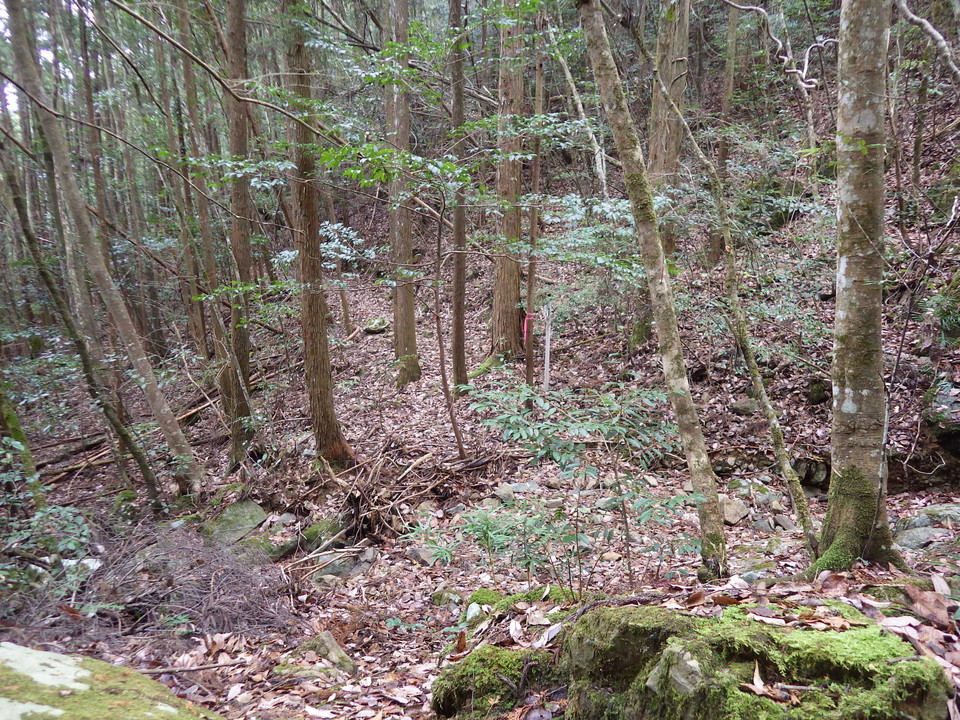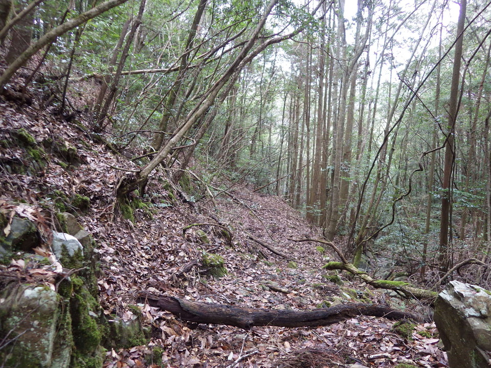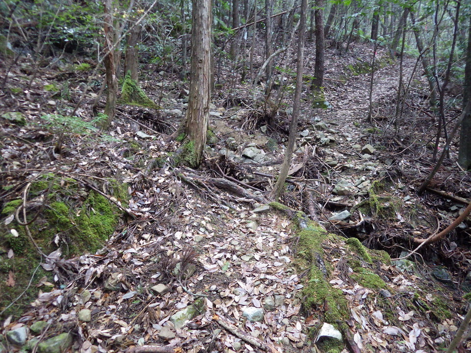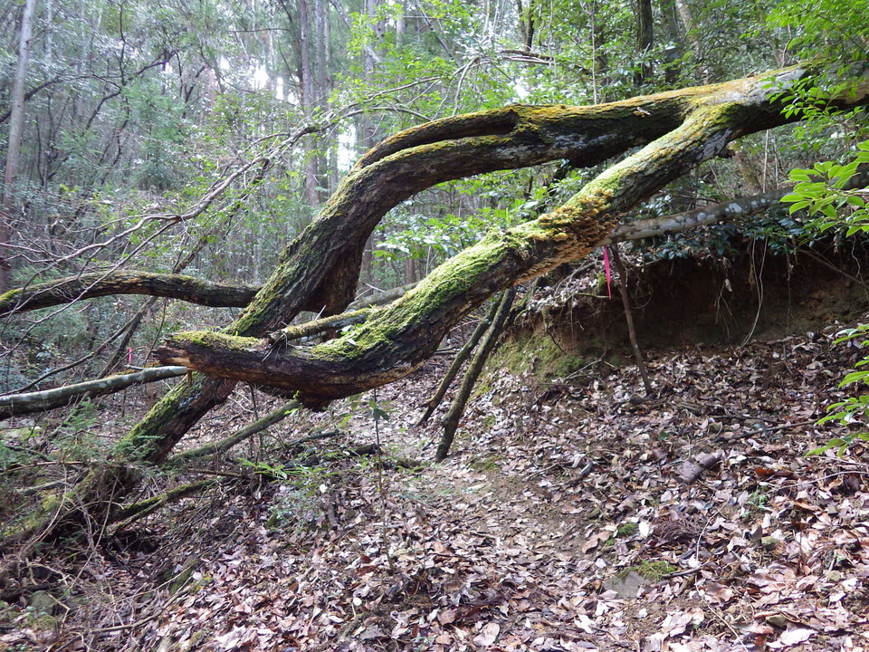 ![]() 梁瀬山の頂上に到着。 ![]() 頂上から大洲城も見えたし、 ![]() 下りの急斜面でコケて、頭が下の仰向け状態になり、 木が邪魔で起き上がれない、体の向きも変えられない。 パウダースキーではよくあることなので結構冷静でしたが 結局は腹筋を使って起き上がるしかなかったです。 ちょっと油断してしまって、下りで道を間違え、後戻りしました。5分ほど。 倒木がたくさんあって、道を塞いでいるのが珍しくないので ついつい、またぎ超してしまったのです。 気がついたときは周囲にピンクのテープが見えなくなっていて焦りました。 間違えたところまで戻って確認しました。 ここは、またいではいけない!右を向けばピンクのテープが見える。