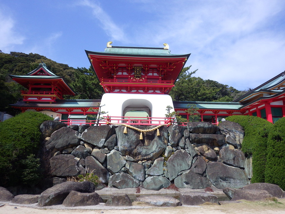 ![]() 竜宮城のような派手な神社(赤間~宮)があり、