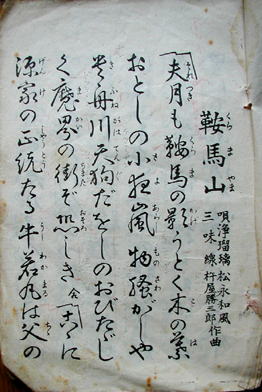 資料@ 長唄「鞍馬山」の段です。鞍馬山で修行する牛若丸を描写したものです。明治時代。