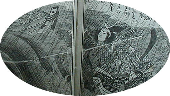 西国に落ちのびようとする義経一行を妨害する平氏の怨霊(絵本源平盛衰記)。