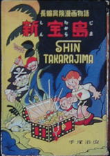 焼け跡の大阪。昭和22年。酒井七馬、手塚治虫、赤本出版を舞台としたふたりの漫画家の出会い。ここから、戦後ストーリー漫画の誕生として、「すべてがここから始まる」というほどに高く評価される作品が生まれる。「新宝島」の出版である。「すべてがここから始まる」という「新宝島」に対する評価は、大阪のある有名漫画古書店で目にしたものだが、「すべて・・・」という評価は明らかに言い過ぎだが、日本漫画史の中で、「新宝島」の出版が画期的な役割を果たしたことは事実だろう。しかし、注意しなければならないのは、「新宝島」の成功の理由を作品それ自体のみに帰することである。「新宝島」は、明らかに時を得た出版であった。「すべてが・・・」という思いが過ぎた評価は、昭和22年という時代に対しても、同時に、与えなければならないだろう。新しいものの胎動にこれほど寛容であった時代は少ないからである。 戦前の赤本漫画の研究を進める宮本大人氏は、「マンガ史は、今まであまりに戦前、戦中の子どもマンガ、とくに赤本マンガに目を向けずにきた〔誕生手塚治虫 朝日ソノラマ 霜月たかなか編 宮本大人「マンガと乗り物」1998〕」とし、戦前戦中の出版統制によって消されたマンガ史の存在、氏の言葉では「忘れられた遺産」を明らかにすることで、「もっと豊かなマンガ史」を描くことができると指摘する。つまり、宮本氏は、「忘れられた遺産を無視することで「新宝島」の孤独な栄光を際立たせることを、われわれは望まない。」とし、「新宝島」のより確かな歴史的評価の必要を指摘する。同感である。 さて、歴史的な役割を果たした昭和22年版「新宝島」を読むことは現在大変難しい。現物はもちろん復刻版として大阪で出版されたものがあるが、これの入手も容易でない。話題になる割には、現物を確かめることが難しいという皮肉は、どこから生じたものだろうか。ご承知のことと思うが、手塚治虫全集〔講談社〕の「新宝島」は、昭和22年版「新宝島」そのものではない。 昭和22年版「新宝島」は、手塚治虫、酒井七馬ふたりの手を経た合作であり、当時の読者に大きな感動を与えることで歴史的存在となった「新宝島」である。歴史には「やり直し」がない。 しかし、手塚治虫全集は、酒井七馬の存在が消えた形の「新宝島」を世に送りだすことで、「歴史のやり直し」を試みることになったのではないか。このいきさつは、全集版「新宝島」のあとがきでふれられている。手塚治虫氏は、「新宝島」を全集に入れることに否定的だったという事実も明記されている。結果的に、私たちは、歴史的存在となった「新宝島」そのものを楽しむことが難しい、という状況におかれることになった。昭和22年版「新宝島」は幻の存在となったわけである。この現象の、おそらく関連する現象と私には思われるのだが、合作者「酒井七馬」に対する低い評価がつきまとう。 |