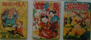 時代的背景としての近現代史資料 1945年の敗戦後、戦時下で埋もれていたさまざまなエネルギーが噴出した。週刊誌の表紙が「華やかな女性一色」となるのは凄まじく速いが、週刊誌の表紙に限らず、時代と社会そのものが急激に変化した。急激な変化の局面は、新しいものの胎動と誕生の局面でもあった。 出版における変化に大阪を中心にした赤本漫画の隆盛を加えることができるだろう。赤本漫画は亡国の危機をからくも脱した人々の生きる喜びを投影して、自由なエネルギーを解き放った。これがこの当時の漫画の人間的、文化的骨格たりえた。「新宝島」誕生の社会的背景である。かくして自由な漫画表現が戦後漫画発展の橋頭堡を築いていくことになる。俗悪の批判の復活は、しばらく後のことである。この当時、マンガは有害で俗悪であり、亡国につながるなどのことを言っても全く迫力を欠いたであろう。 しかし、やがて批判の足音が高くなり、赤本出版を手がけていた人々の多くは第二次赤本と称される「貸本」漫画出版に移行し、批判をかわすことになる。「貸本の時代」は貸本屋が存在するだけでなく、貸本専門の出版社が存在した時代でもあるのだが、赤本漫画出版からの移行というように考えるとわかりやすいであろう。貸本漫画と漫画出版が深く結びついていた時代である。 貸本と出版の結びつきは江戸時代(貸本屋に扮した密偵が漫画「るろうに剣心」に登場している)からあり、長い歴史を持つシステムでもある。経済的合理性があるのは否めないであろう。時代的背景はこの部分に最も深く関係するのではないか。読みたいが本を買えない人々に本を読んでもらえるという需要の拡大は経済的合理性のひとつであるとともに、出版の状況、生活水準などがかかわる問題でもある。これらの問題は、時代背景を物語る各種資料で描写することになるだろう。貸本と出版の連合体という古い出版システムが最後にしたことが、女性漫画家の育成という戦後社会形成に深くかかわる仕事である。 さて、「幻の新宝島」において、赤本漫画「新宝島」の運命とひとりの漫画家の処遇にふれた。赤本「新宝島」が幻になる過程は、貸本の時代を経て、社会が経済的繁栄を謳歌し、漫画も急激に拡大展開する流れに重なる。「もはや戦後ではない」ということばがはやったことがある。戦後的な生活・貧困の終焉と重なりながら、赤本「新宝島」の影もしだいに風化するかのように希薄になっていくということなのである。「貸本の時代」の終焉も似たようなもので風化である。 新しい常設展示「貸本の時代」のテーマは時代と社会ということになるだろう。(2003年5月15日) |