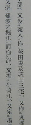 紀の仁徳紀11年の条に同じ趣旨の記述がある。もちろん淀川(支流を含む)の