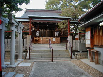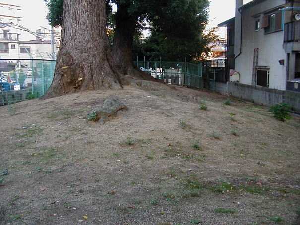堤根神社 本殿部分、また樹木の部分が堤跡