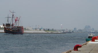 天保山2004 安治川河口 船は遊覧船サンタマリア 天保山頂(中央部塔)