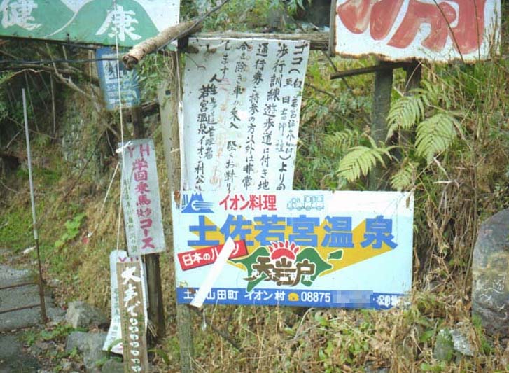 土佐なのだそうです。 1993年の春、自分たちは休みを利用して四国を貧乏旅行の最中でした。食事は当然釣りによる自己調達と自炊。宿は適当な場所を見つけてのテント暮らし。地図で場所を拾いながらの温泉めぐりもとても楽しいものでした。「そろそろいい加減風呂に入らないとなあ……」そんな話をしながら土佐山田郊外の山道を走っていた最中に、我々はその看板に遭遇しました。即座に大爆笑しました。 「NHKで全国放送90分」、「ローマ法王に謁見」、「卑弥呼は年中生野菜」。ツッコミ所満載なフレーズの十字砲火に、この目で確かめなければ男が廃ると、その若宮温泉なる地図にも名の載らぬ無名の温泉に、我々は嬉々として乗り込んでいったのでした。 国道を逸れ、細くて長い急な坂道を下っていった先にソレはありました。車から降りるのが何となく躊躇われてしまったのは、けして降っていた雨の所為だけじゃありません。 元は絶対結核かなんかのサナトリウムだっただろうと問わずには居られない、温泉地には不釣合いも甚だしいコンクリ打ちっぱなしの古く巨大な建物。構内に張り巡らされた謎の万国旗と正体不明のイベントミニオリンピック。名物はイオン料理。太平洋高原って一体何なんですか? 当時田舎の純朴な大学生だった自分たちにも、そこが真っ当な場所で無い事だけはひしひしと伝わってきました。「引き上げた方が良いよね、絶対」怯んだ仲間たちの間で無言のアイコンタクトが交わされる中、一人、O先輩だけがロビーの方へツカツカと歩み寄って行きました。 「あの〜、風呂だけって入れますか?」 O先輩、漢です。尊敬します。 「今は一寸入れないねえ……」 「何時頃になったら入れますか?」 「さあ、沸かさなきゃならないから夕方位かねえ……」 普通の温泉でされたら絶対怒り狂うだろうぞんざいな応対が、こんなに嬉しかったのは生まれて初めてです。O先輩が次に地雷を踏みに行く前にと、我々は足早に若宮温泉を後にしました。土佐犬の子犬が悲しげな目で車を見送っていました。 あの強烈すぎる温泉の思い出は今でも記憶に焼き付いて離れる事がありません。先日なんとなくネットで検索を掛けてみた所、あのなげやりな営業方針がやっぱりまずかったらしく一度閉鎖になった物の、最近になってリニューアルオープンしたという噂を掲示板で目にしました。 さすがに当時のアレっぷりのままでは再建は難しいでしょうし、今では普通の温泉地になってしまっているのでしょうか。そう考えるとあの時入れなかった事がちょっぴり残念な事のようにも思えてきます。不思議な物ですね。 |