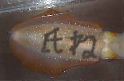 さあ、これがアオリイカだよ。→●(写真提供は大竿道の大塚さん。どうもありがとうございます)