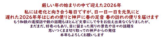 〈和鉄探訪・日本の源流〉〈風来坊・Country Walk〉〈From Kobe・神戸便り・四季折々〉 2026.2.26.更新