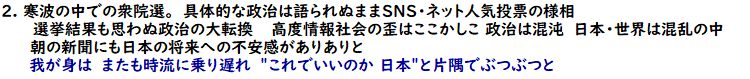 下記 時間切れで 整理できずに置き残したことや頭の中で、もやもやしていることなど