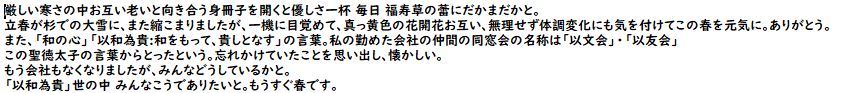 ■先頭に戻る 〈 年賀 & 1・2神戸便り 春の足音 )