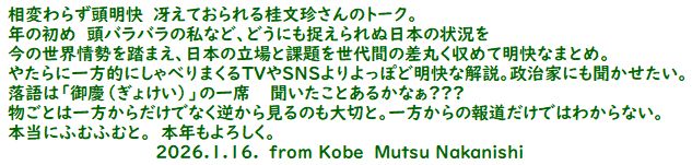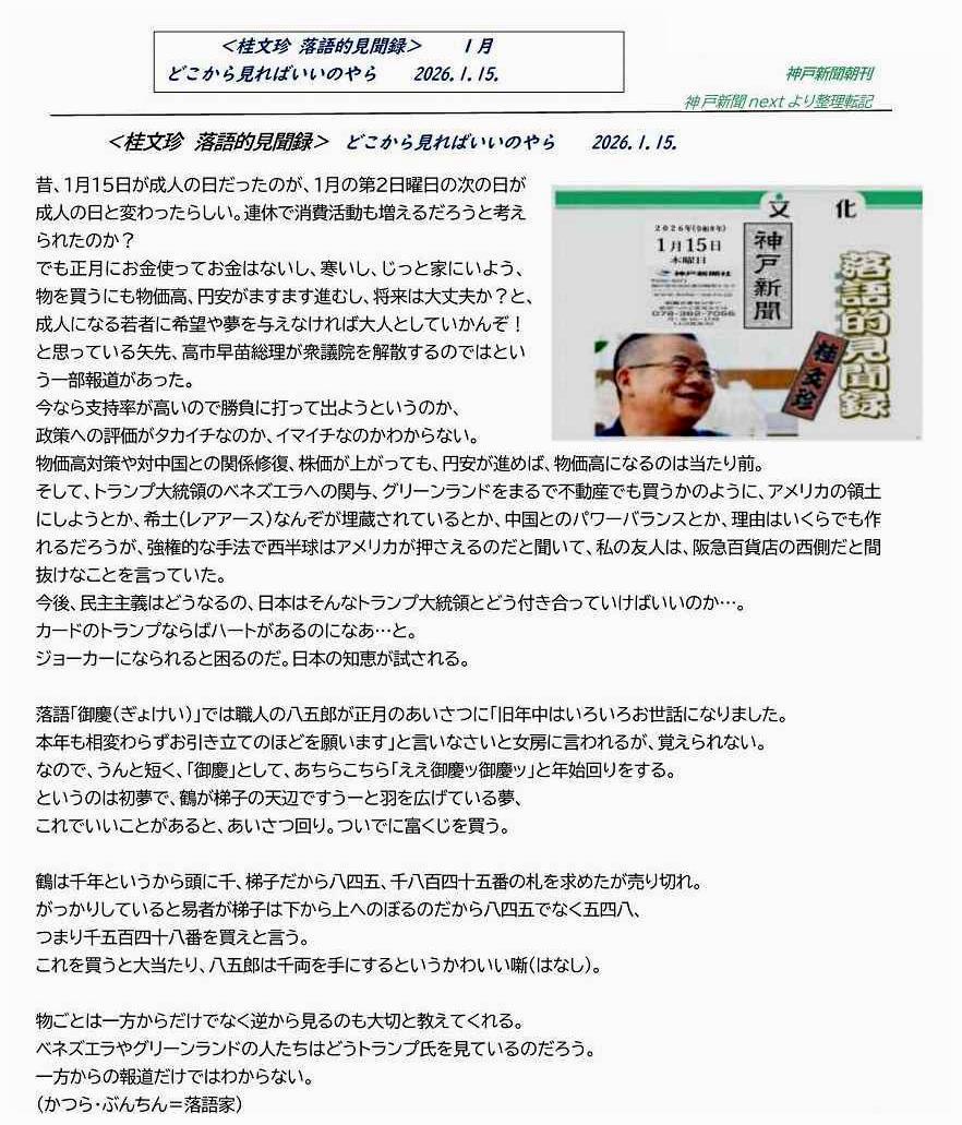 4.< 桂文珍 落語的見聞録 1月 > どこから見ればいいのやら 2026.1.15.