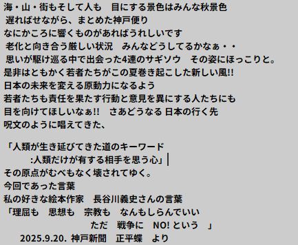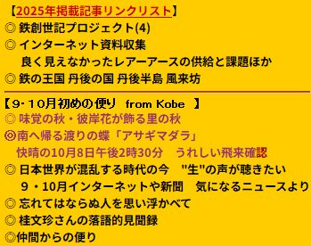 【2025年掲載記事リンクリスト】 【初秋の風 味覚の秋到来 神戸便りtop page】 【Topに戻る】