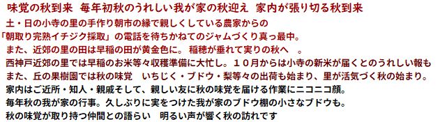 ![]() ![]() 初秋の風 味覚の秋到来 神戸便りtop page