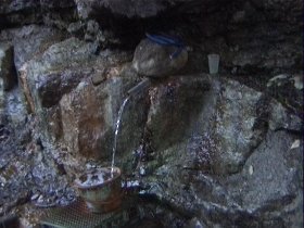 岩の下に湯がたまる。(冷泉で慣れが必要)