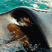 1995年11月、南フランスのアンチベーという場所にあるマリンランドから一頭の雄のオルカが日本に運び込まれました。2トンを越える彼の体は、フランスから日本への旅のどこかでワイヤ又はロープで吊されたらしく、なめらかな腹部や背鰭には生々しく、むごたらしい傷が見られます。