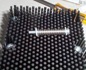 スタンドオフを取り付けたらいよいよ本体の取り付けです。 ネジにナイロンワッシャ−とスプリングを取り付け、ネジ止めします。 |